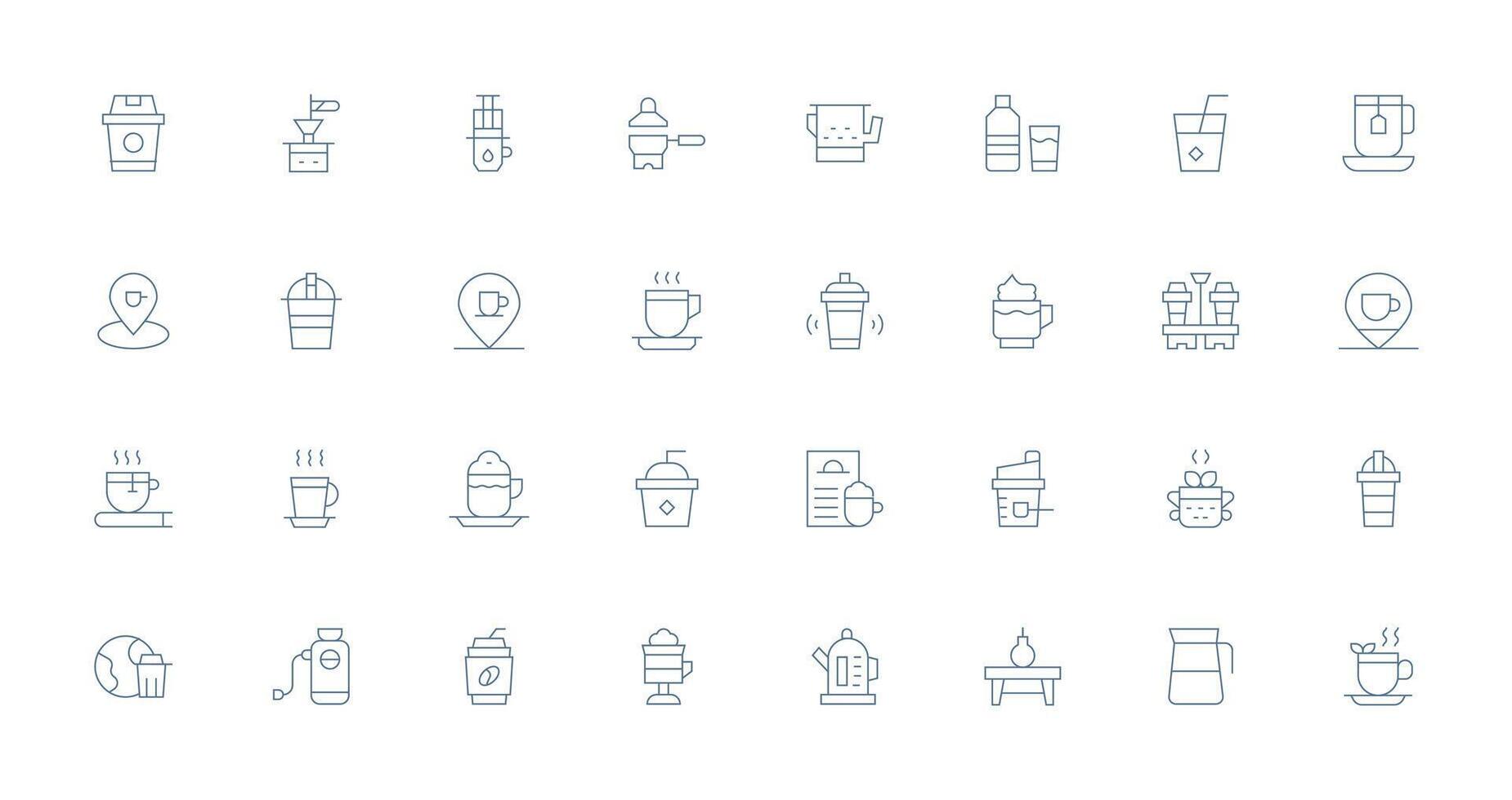 Coffee Set with 32 Thin Line Icons Clean Icon Set Icon Pack for UI Projects vector
