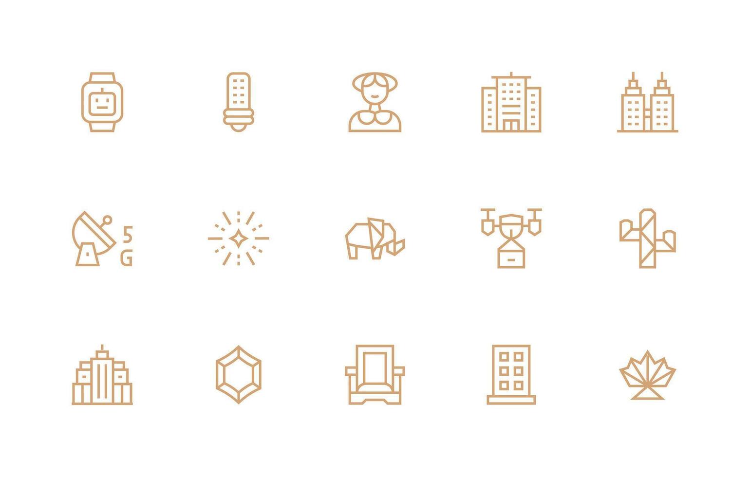 Modern Design Icons featuring 15 in Regular Line Style Icon Collection Set vector