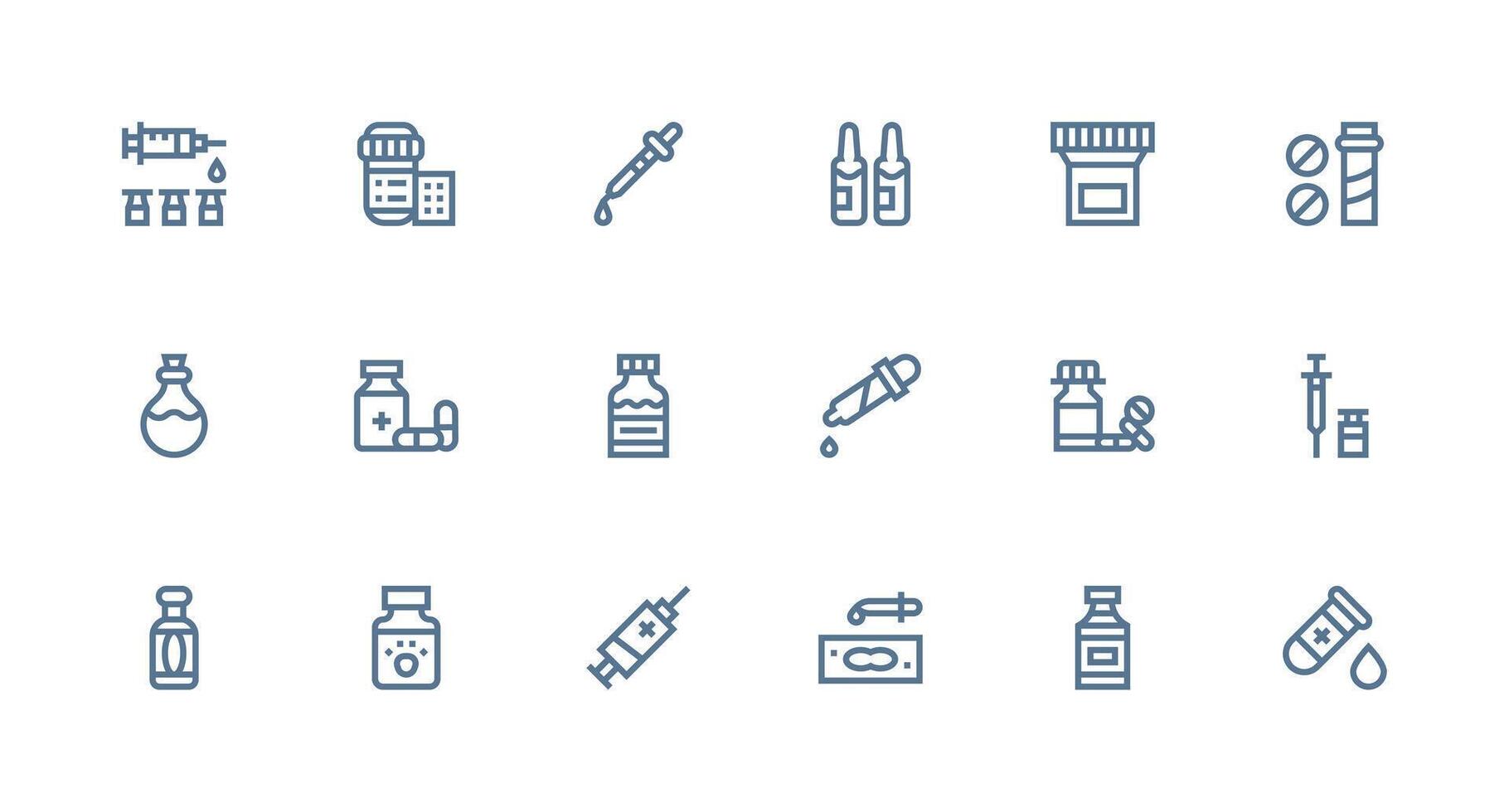 Vial Icon Set with 18 Strong Stroke Line Graphics Interface Icons for Daily Use Free Vector