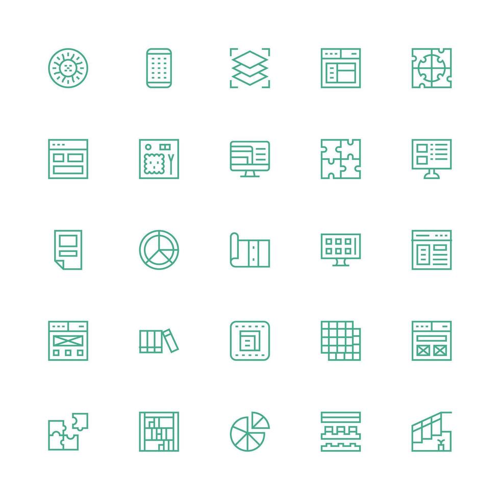 25 Medium Stroke Outline Style Icons from Sections Collection Quick Access Icons for UI Development vector