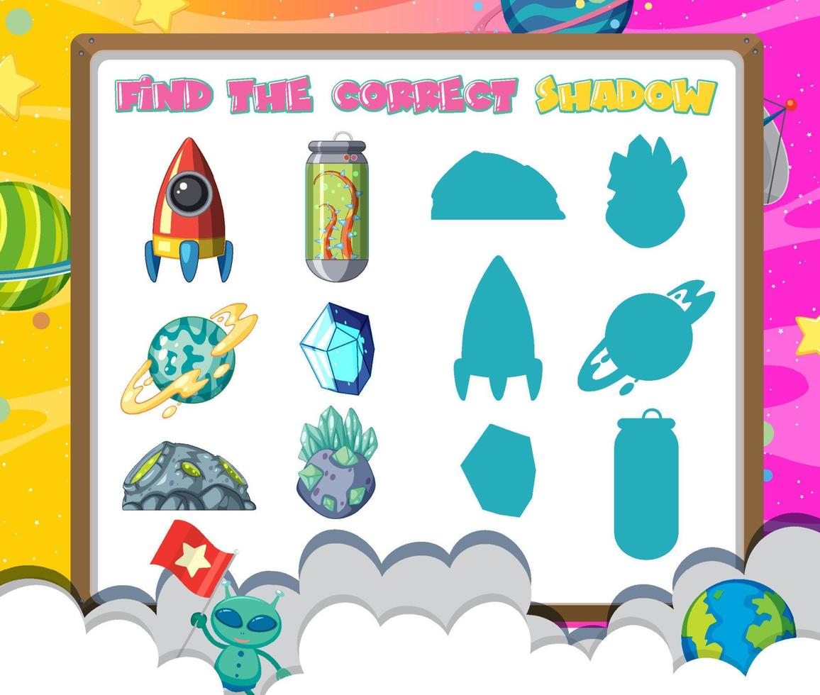 Find the correct shadow game template of space Free Vector