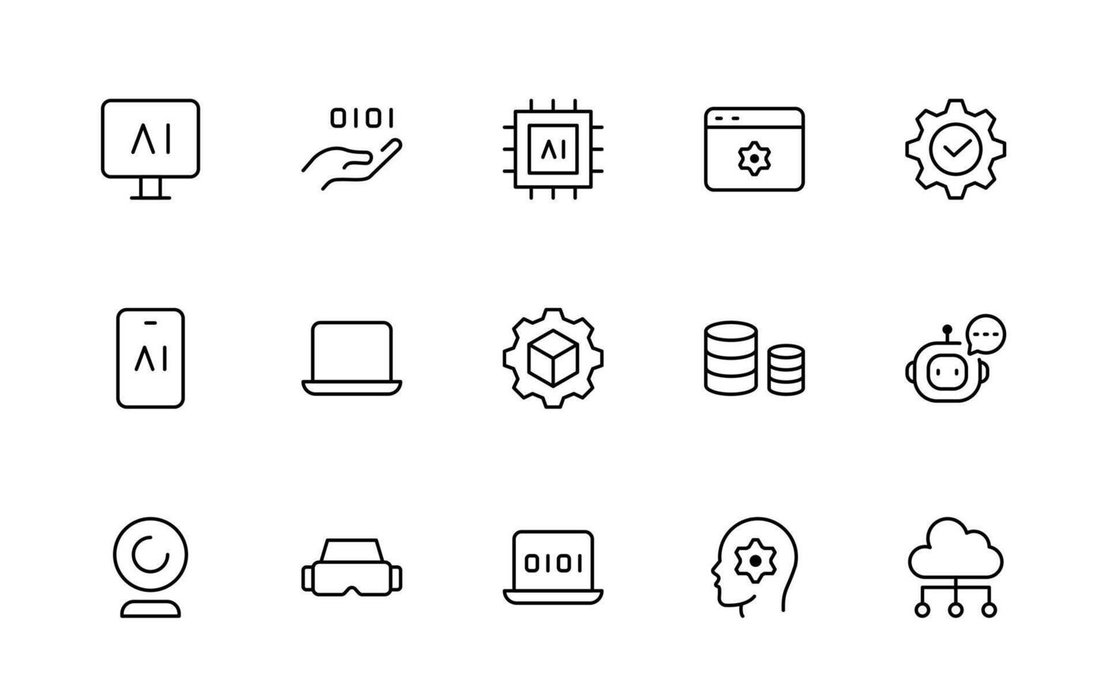 Artificial intelligence and Networking technology icons. AI and networking simple minimal editable thin line icon illustration. Pro Vector