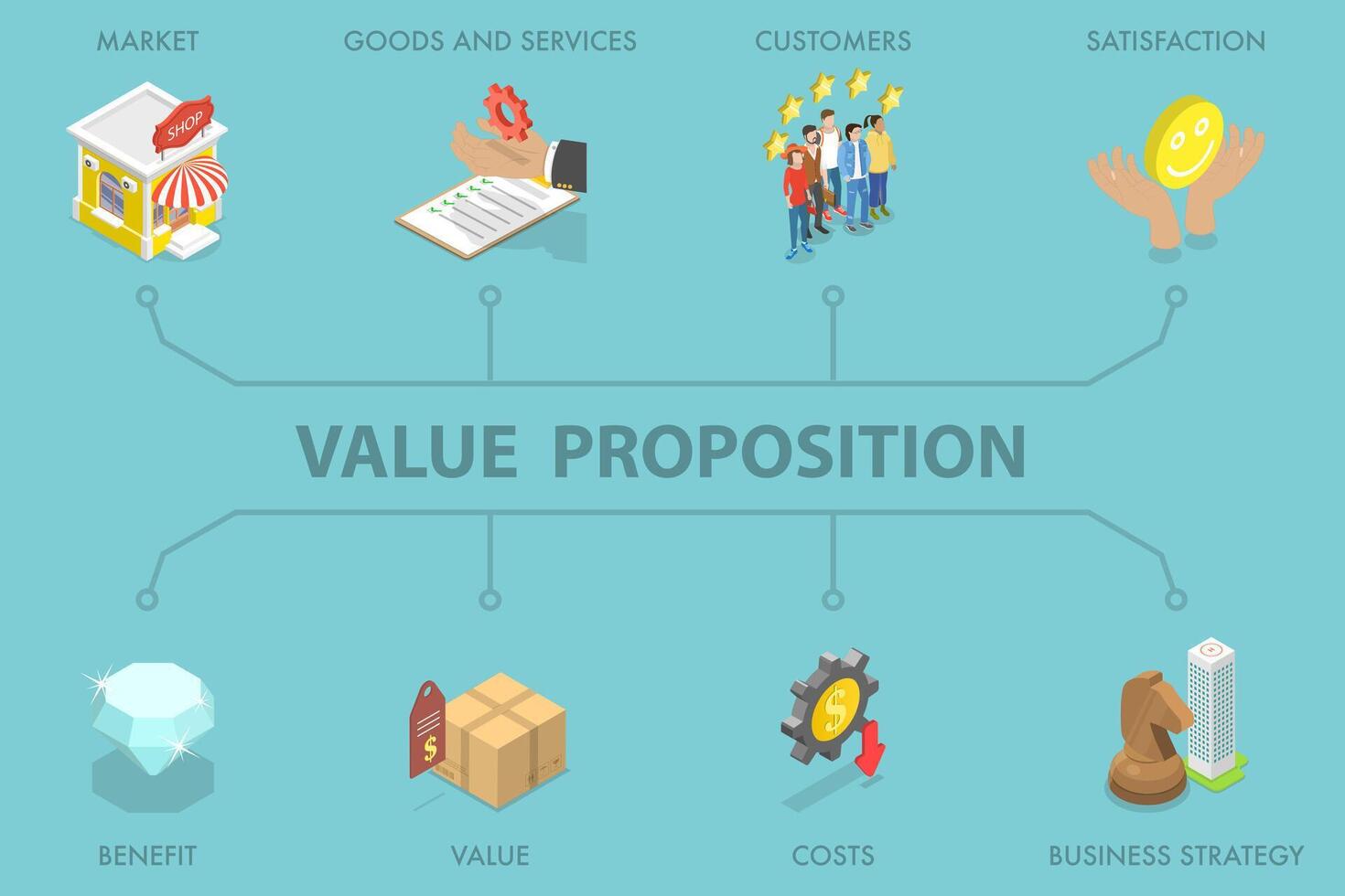 3D Isometric Flat Illustration of Value Proposition Banner, Display For Enhanced Communication And Engagement Pro Vector