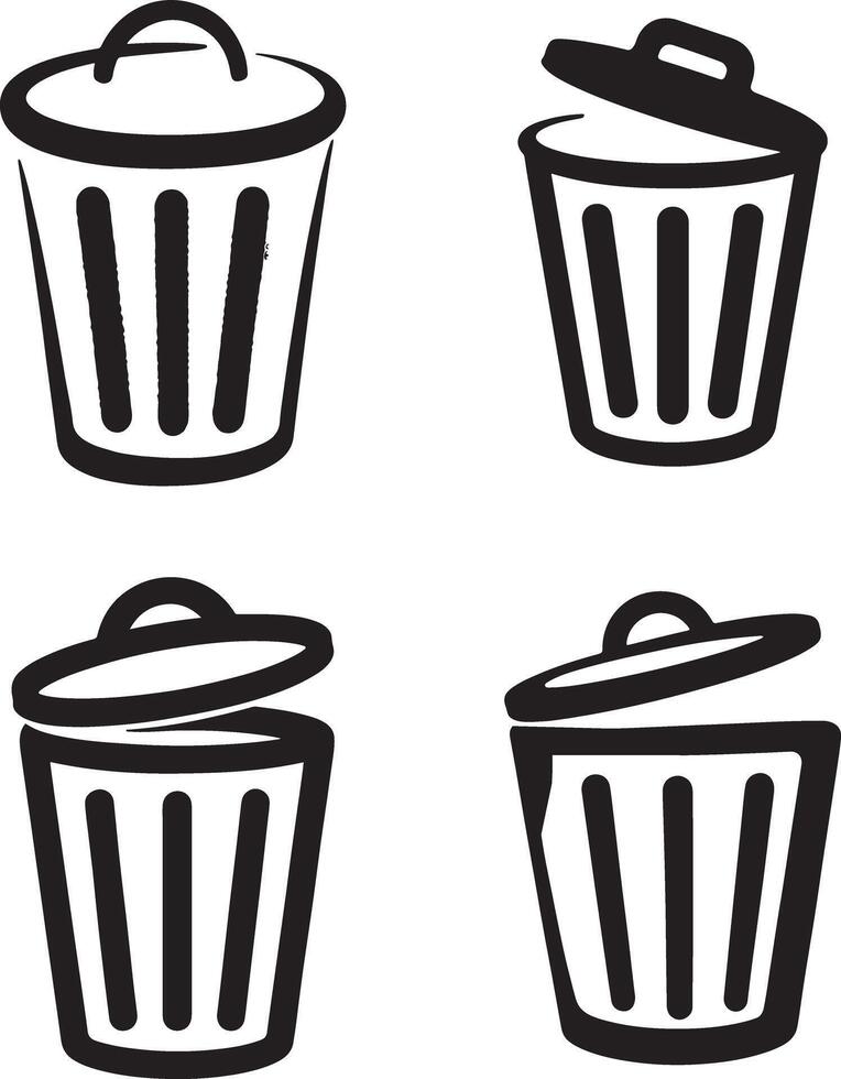 Trash Bin Icon set Black Minimalist Silhouette for Delete and Remove Functions in UI and Digital Design Pro Vector