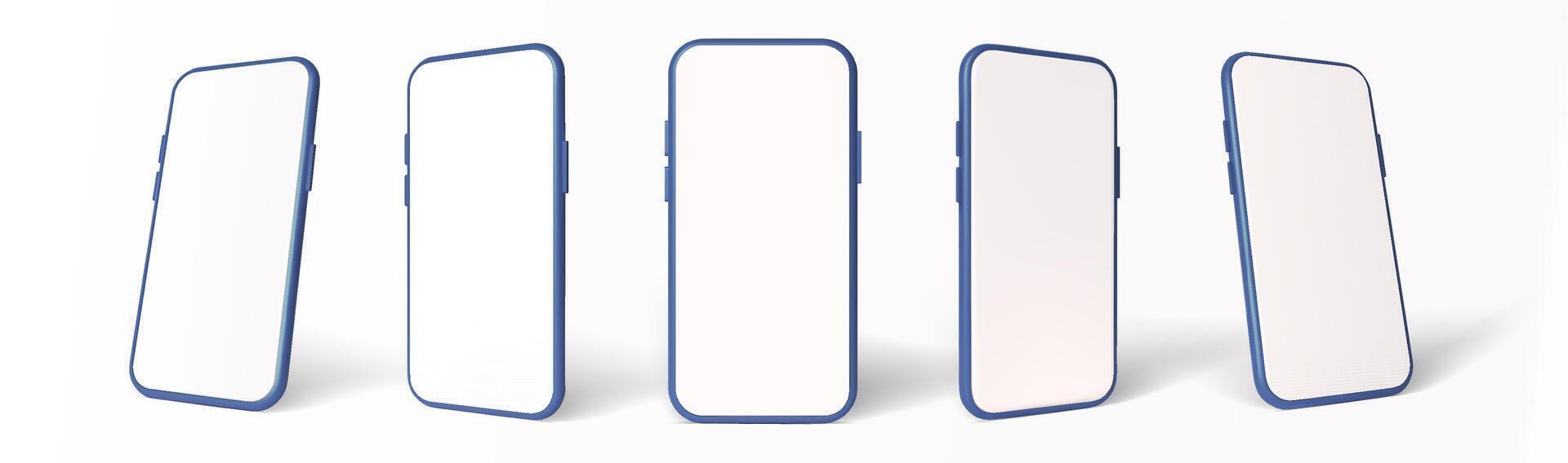 Realistic 3d blue smartphone mockup. Modern mobile device with blank screen. template for app design, advertising, ecommerce, technology and digital presentation Pro Vector