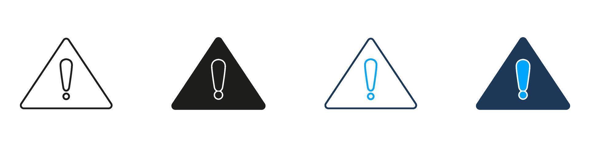 Exclamation Mark In Triangle Warning Line And Solid Icon Set. Alert, Caution, And Attention Symbol Collection. Safety And Hazard Notification. Isolated Illustration Pro Vector