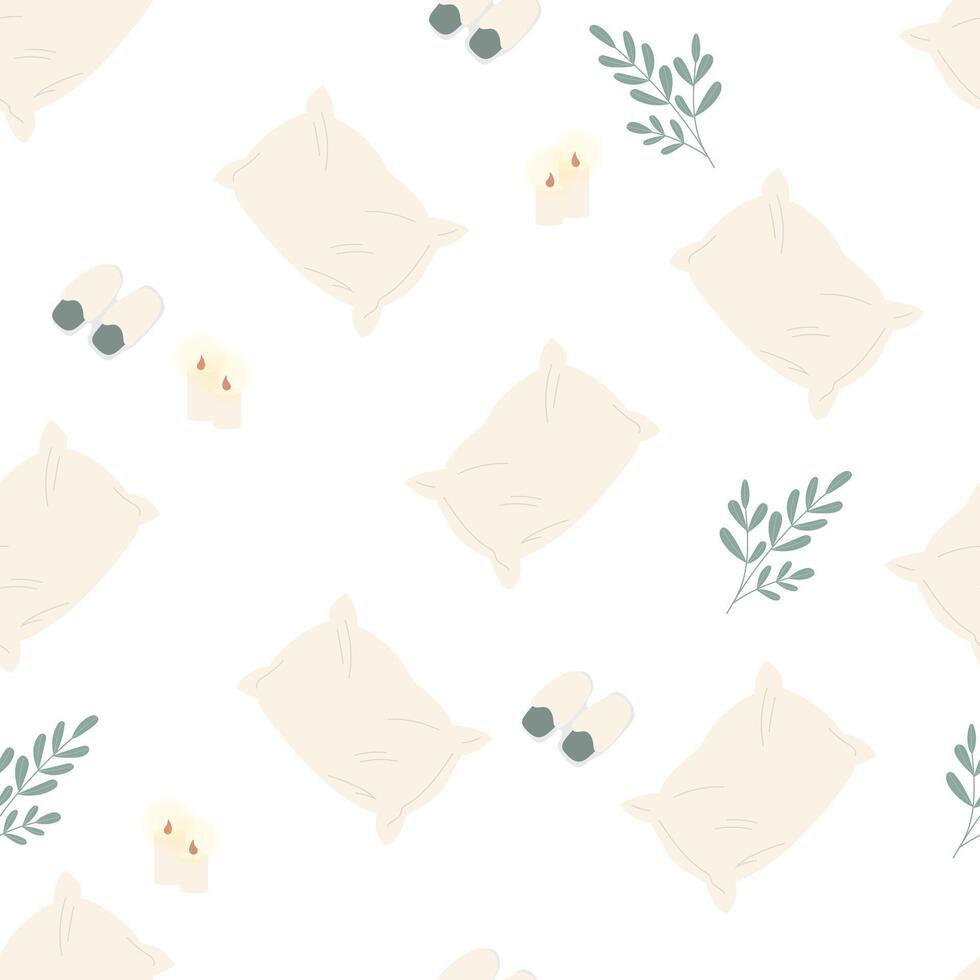 Seamless pattern with pillows slippers candles and leaves Pro Vector