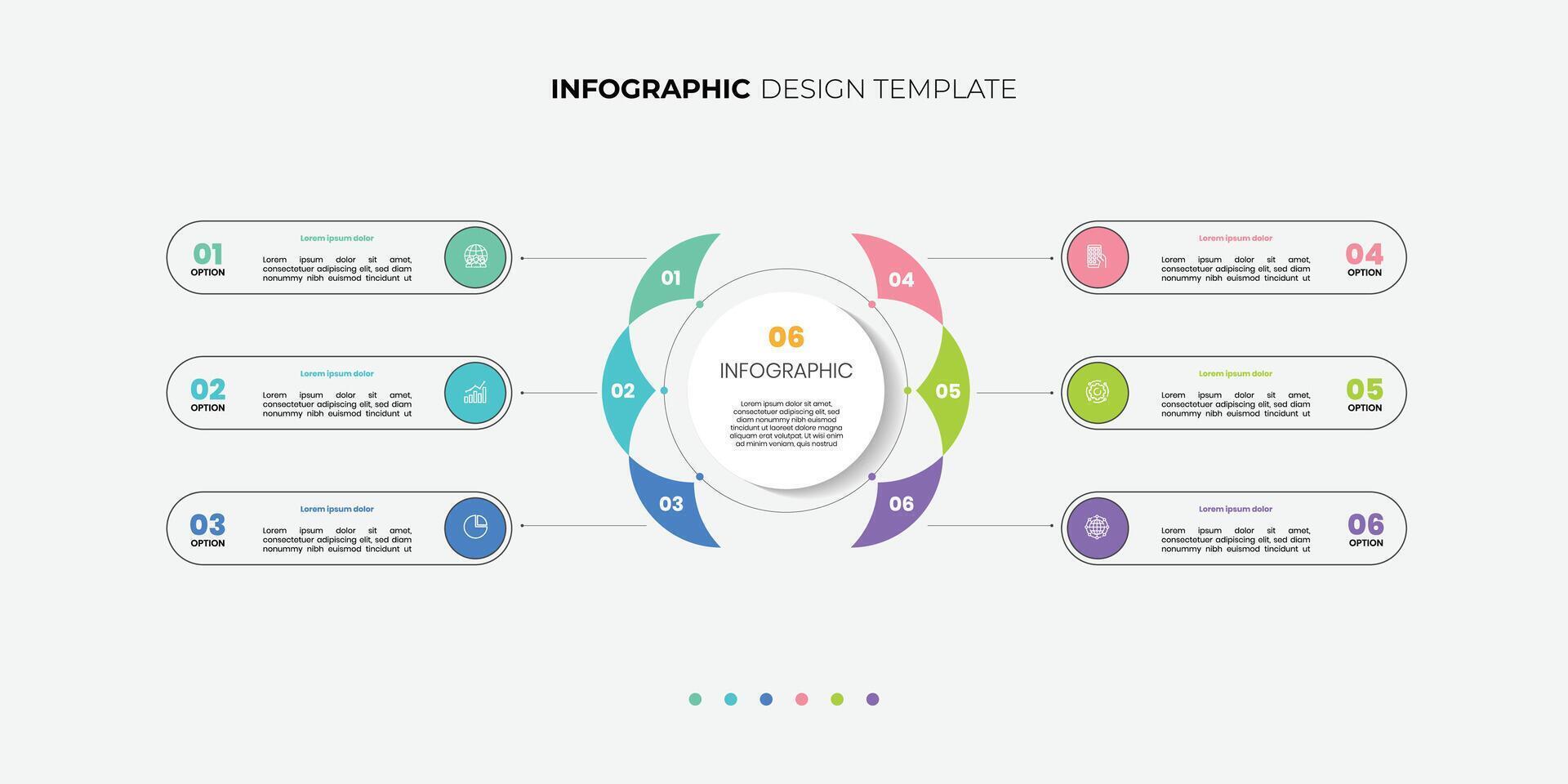 Modern Circle chart infographic template with 6 options for presentations. Infographic 6 diagram chart template Pro Vector