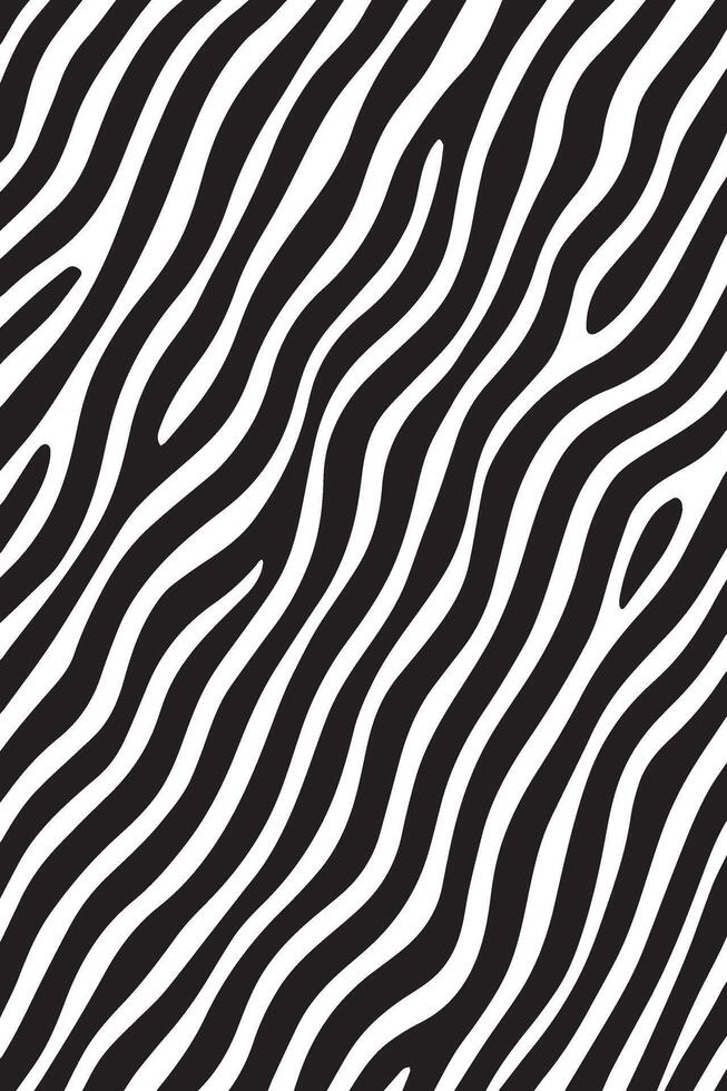Abstract black and white wavy stripes pattern mimicking the distinctive texture of zebra stripes Pro Vector