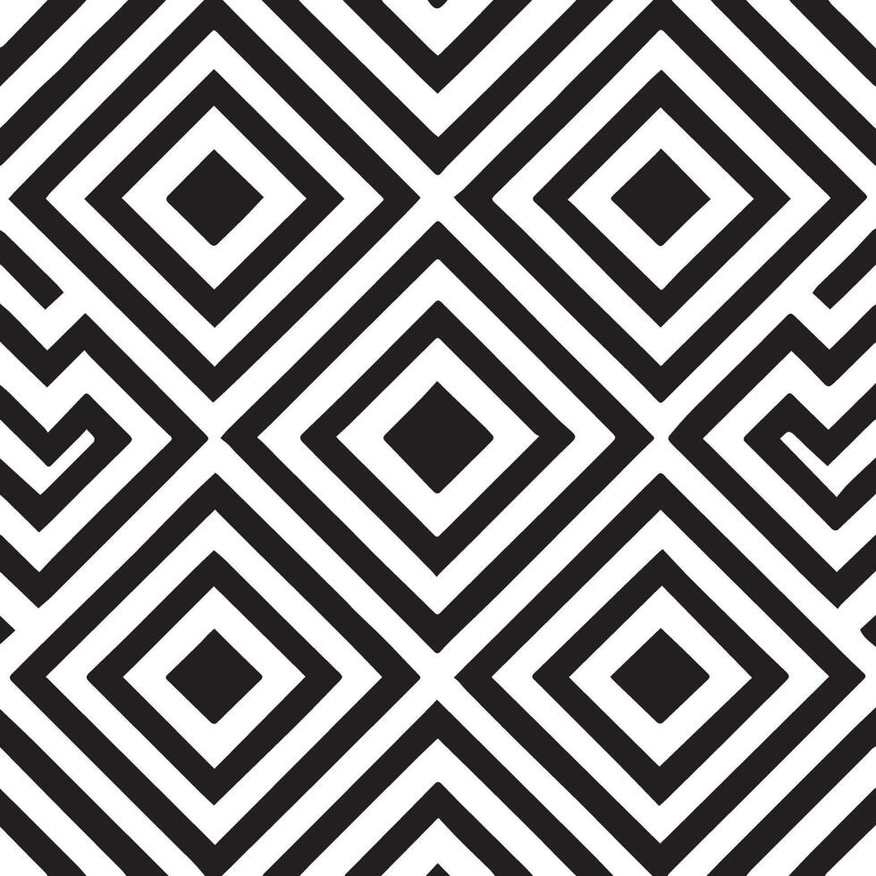 Intricate black and white geometric pattern featuring interlocking diamonds and maze like lines Pro Vector
