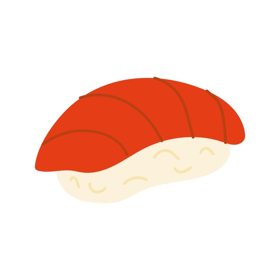 Sushi with red fish topping on a white rice base served on a simple background Pro Vector