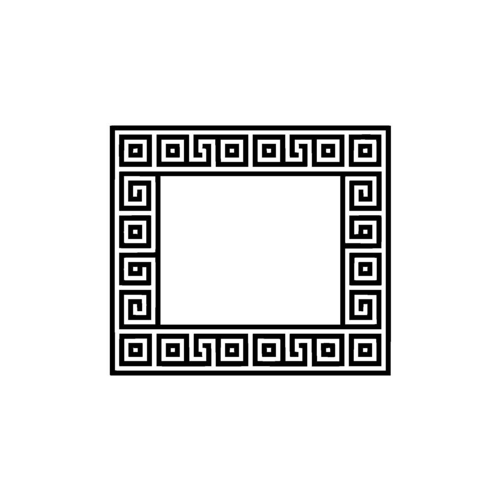 A minimalist geometric meander border with a repeating pattern of square scrolls and central empty rectangular space on a subtle off background Pro Vector