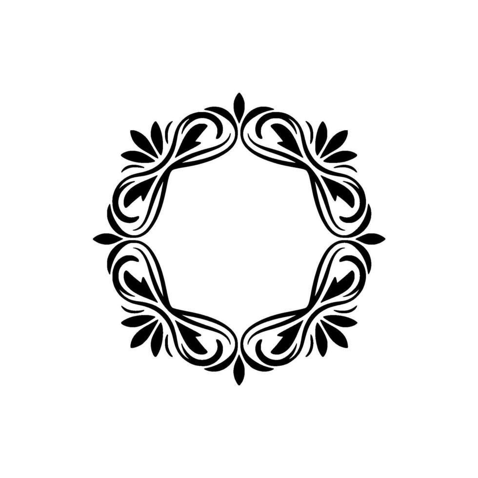A symmetrical decorative circular floral frame composed of scrolling leaf elements and small petal shapes on a light grey background Pro Vector