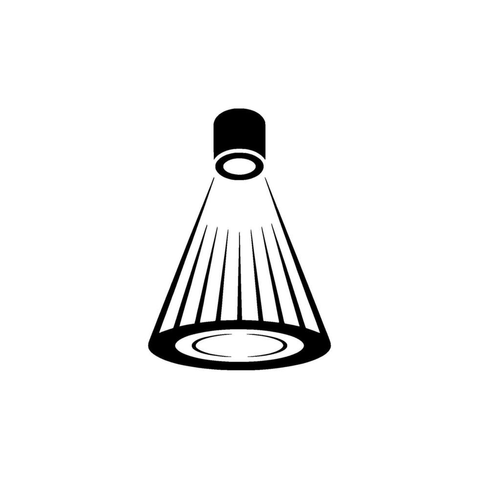A bold silhouette of a spotlight emitting stylized light beams and casting an illuminated circle on a stark background representing focus and illumination Pro Vector