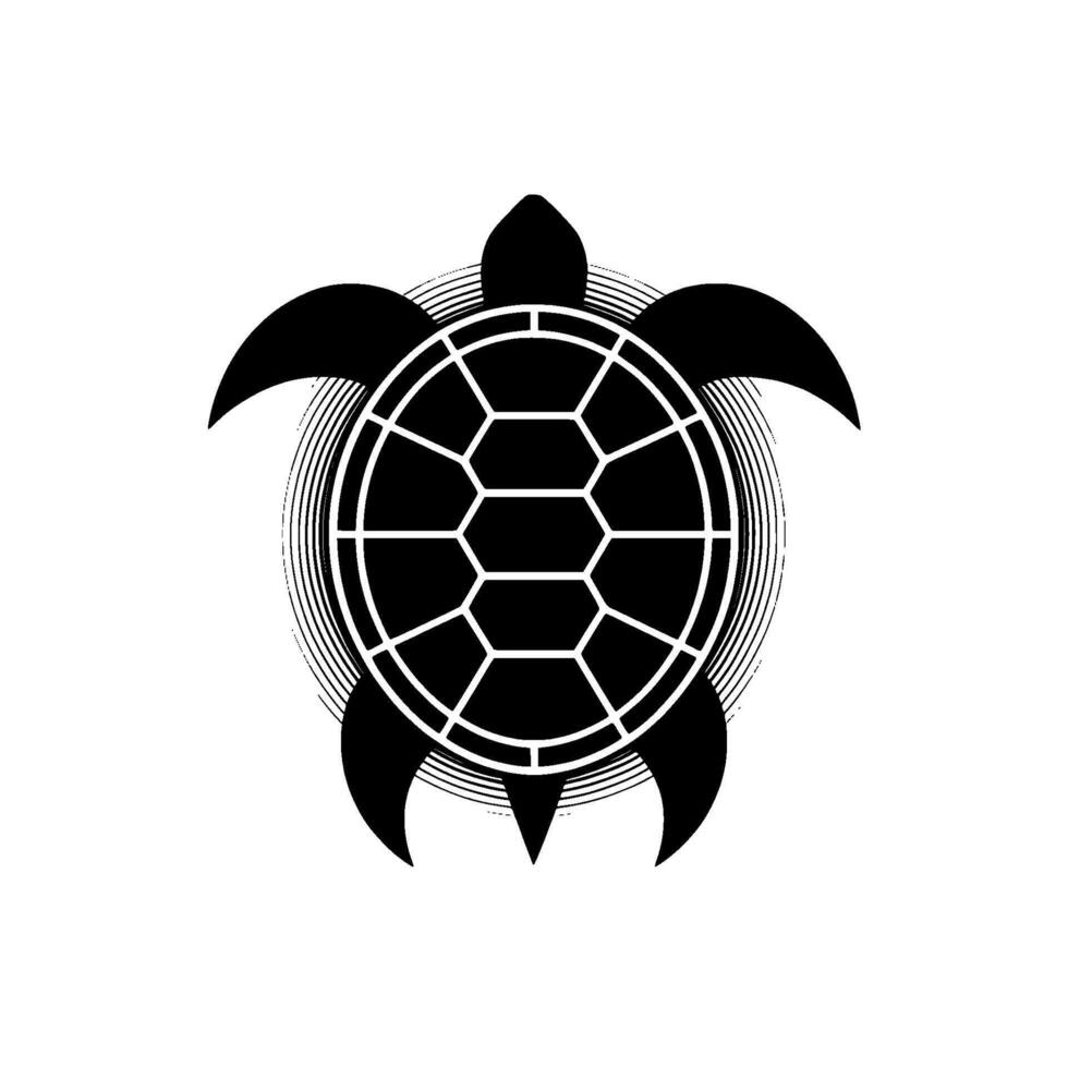 A stark silhouette of a stylized sea turtle with a geometric shell pattern and radiating concentric grey lines on a plain light grey background Pro Vector