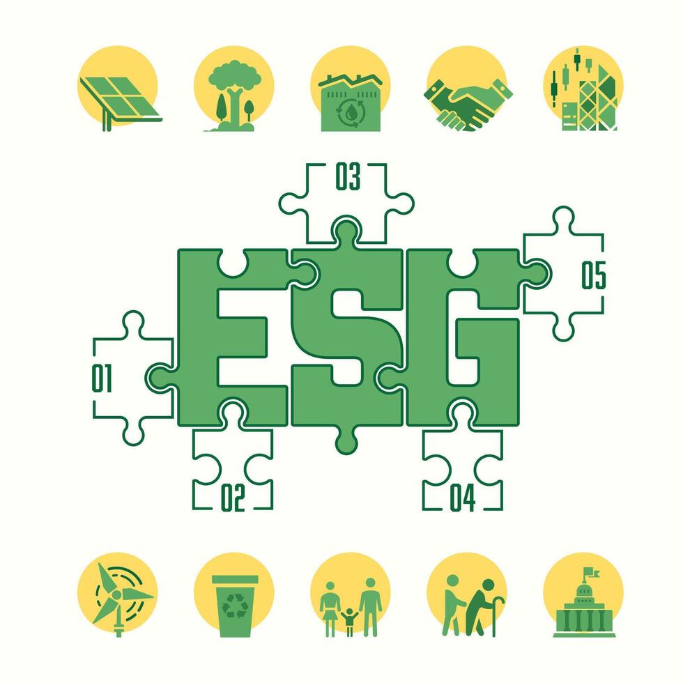 concept of sustainable business, graphic of ESG combined with jigsaw shape and infographic element Pro Vector