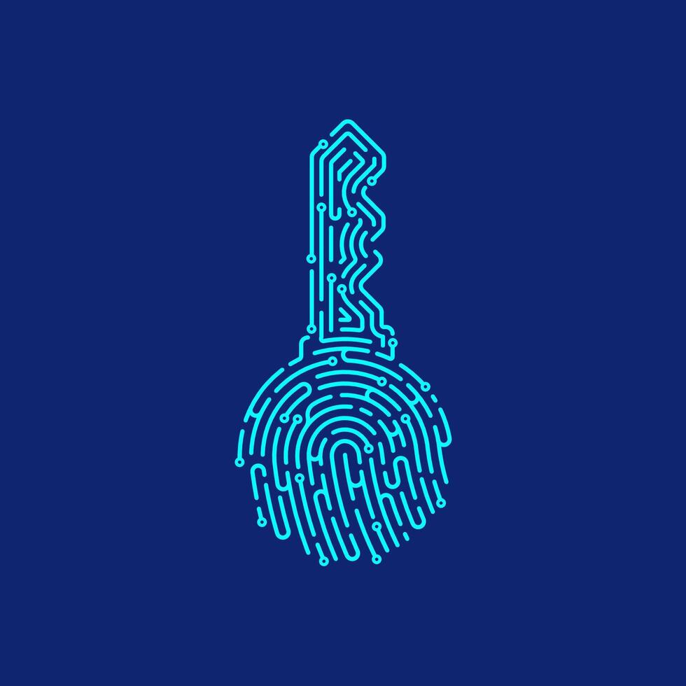 concept of private key or digital key, lined graphic of key shape combined with fingerprint managed in editable path Pro Vector