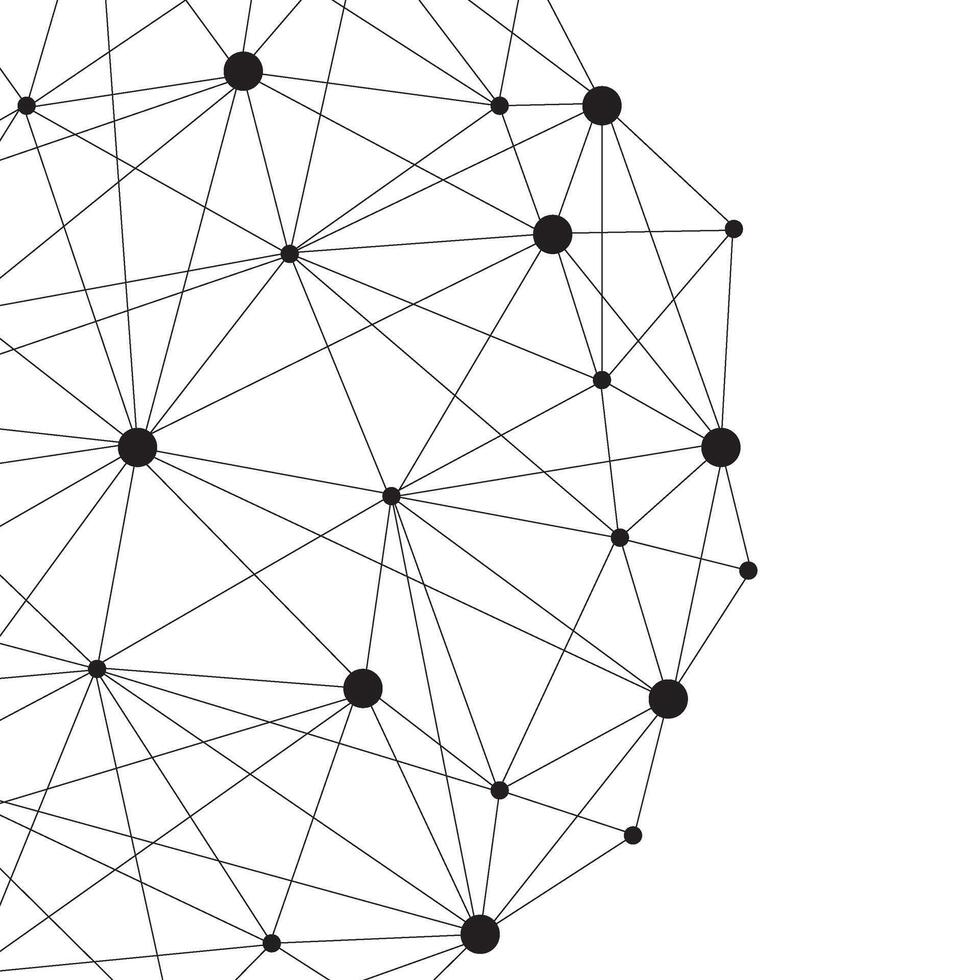 Global communication with network connection line. AI, big data, blockchain, cyber technology, and global communication with nodes and connections in geometric structure. Free Vector