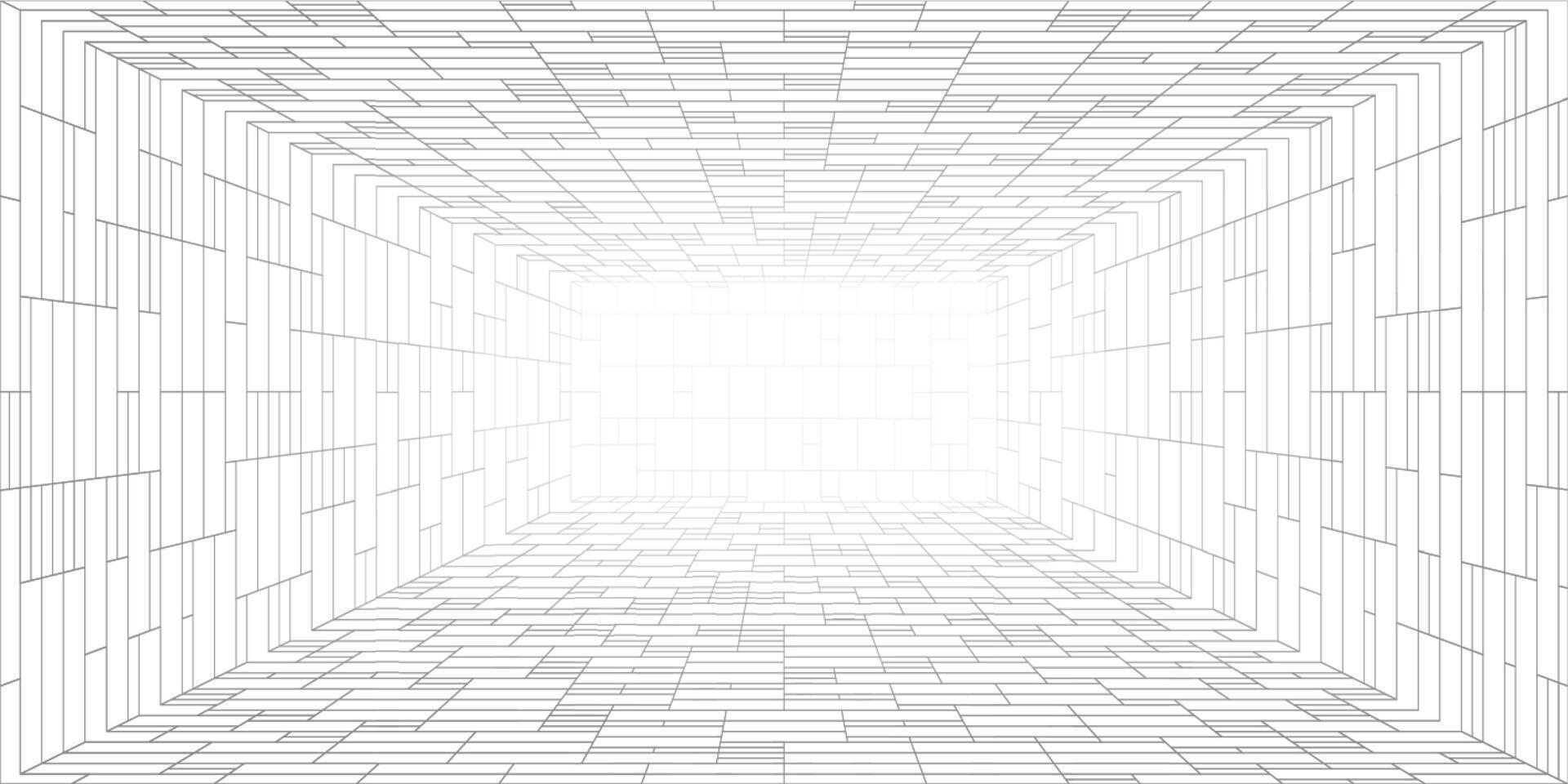 3D grid room with wireframe box pattern and cube shapes for digital background and space. Futuristic interior with white line mesh and tech projection. graphic template with perspective design. Pro Vector
