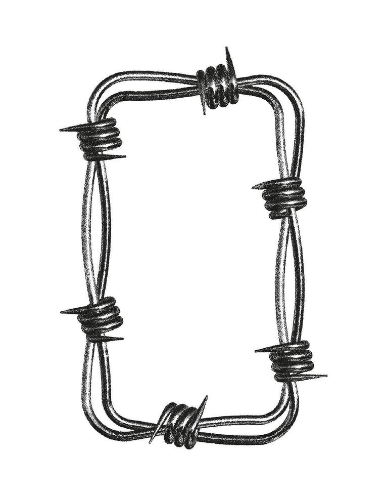Barbed wire forms a bold rectangular frame, showcasing a punk rock vibe. The noisy and grainy texture adds an edgy atmosphere, enhancing the metal elements. Pro Vector