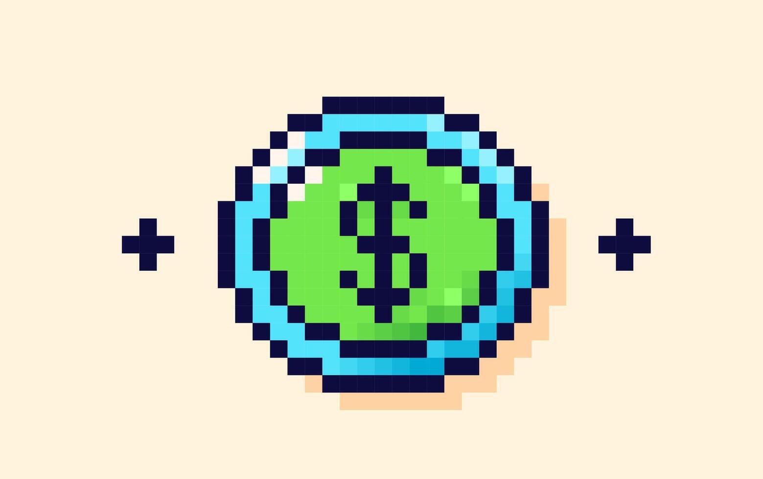 Y2K user interface coin. Blue and green pixel art element. Pro Vector