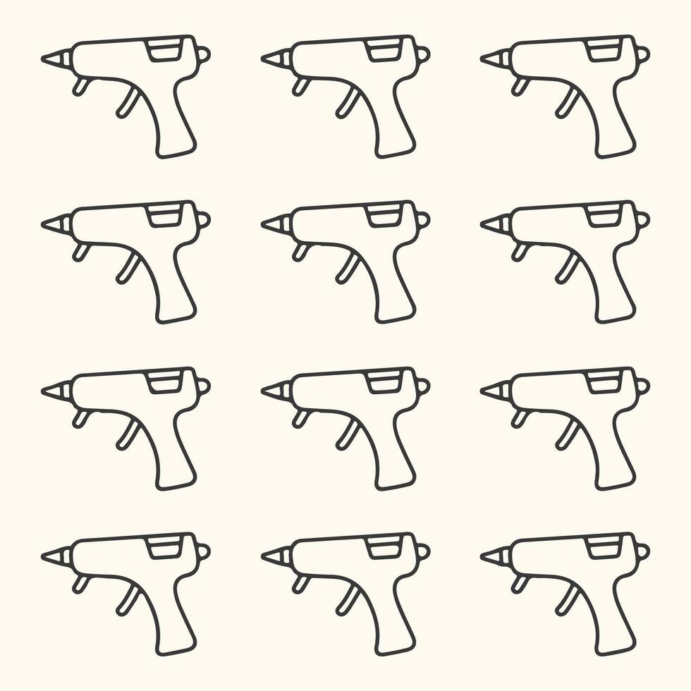 Art of seamless pattern of handdrawn hot glue gun icons in a repeating grid, isolated on a light cream background for crafting and diy projects Pro Vector