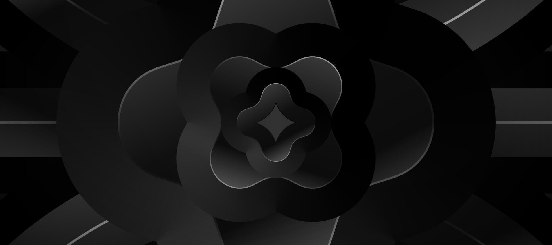 Dark gray abstract geometric background with expanding flower like shapes Pro Vector