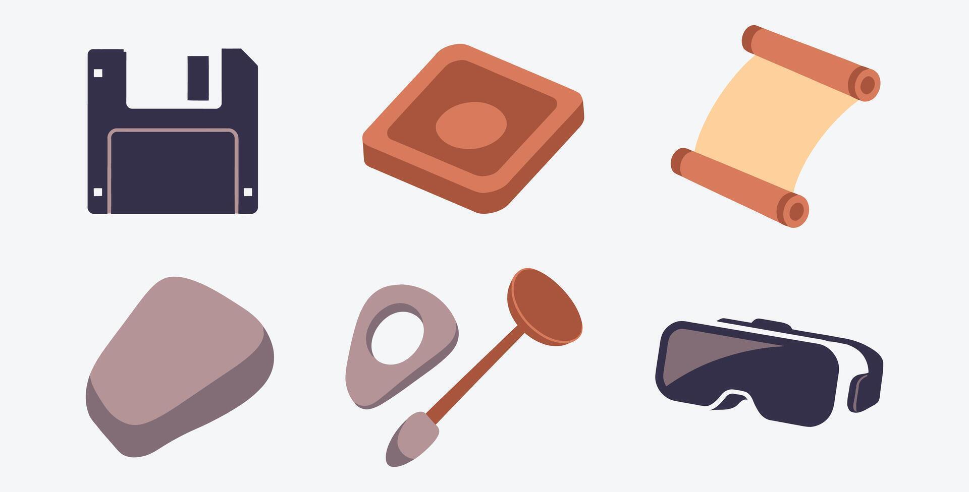 Evolution of technology from floppy disk to virtual reality headset Pro Vector