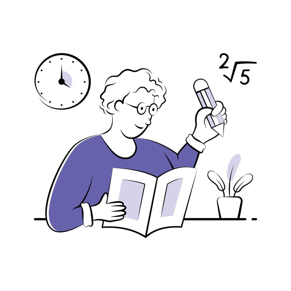 A hand drawn illustration of a student writing homework and solving academic assignments. Pro Vector