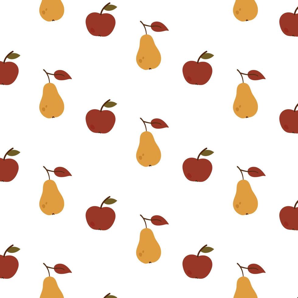 Seamless pattern with red apples and yellow pears for autumn fruit design Pro Vector
