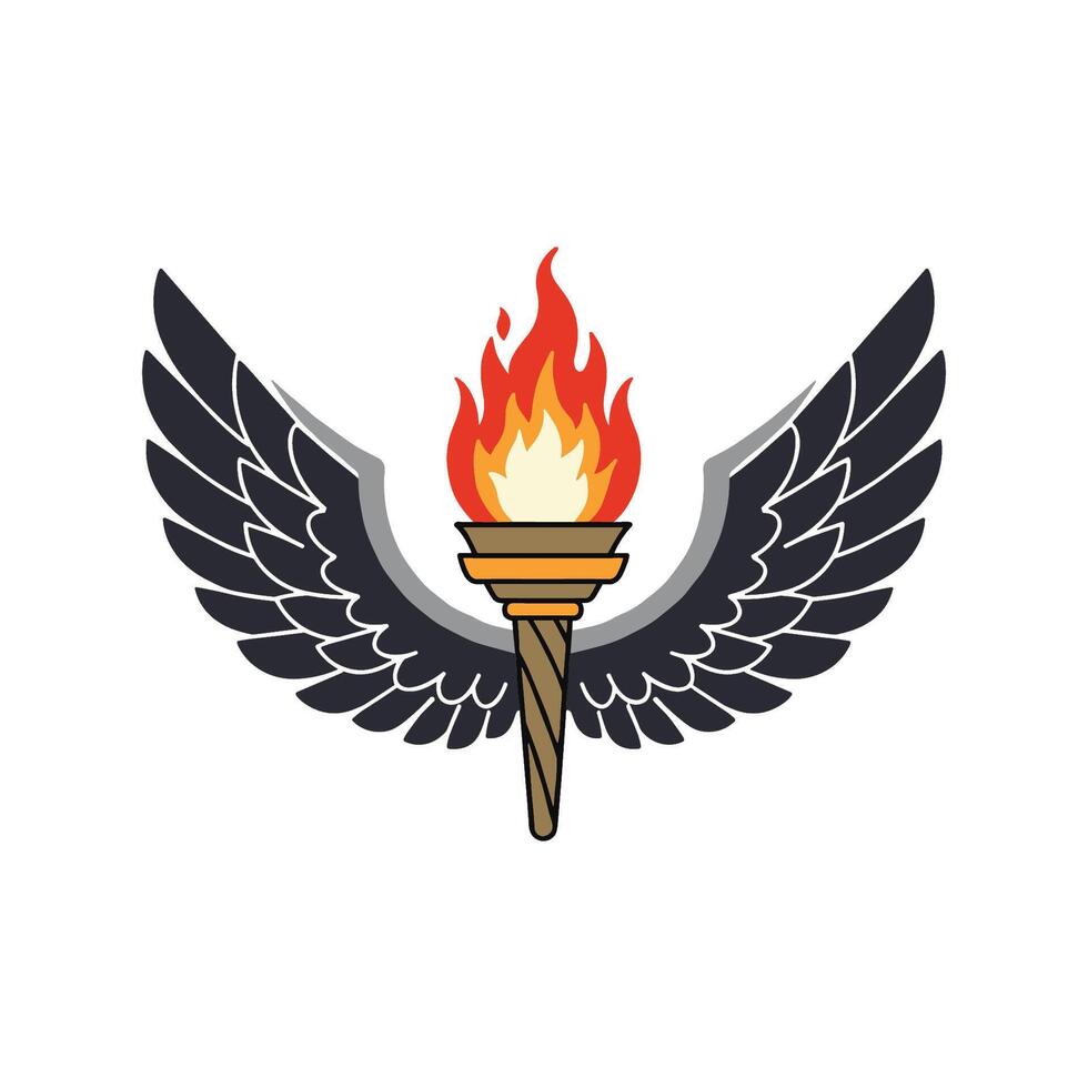 Torch with wings symbolizing freedom and enlightenment Pro Vector