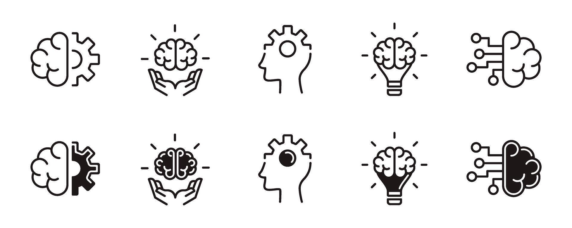 brainstorm icon line set cognition brain thinking creative idea intelligence signs outline illustration for web and app Pro Vector
