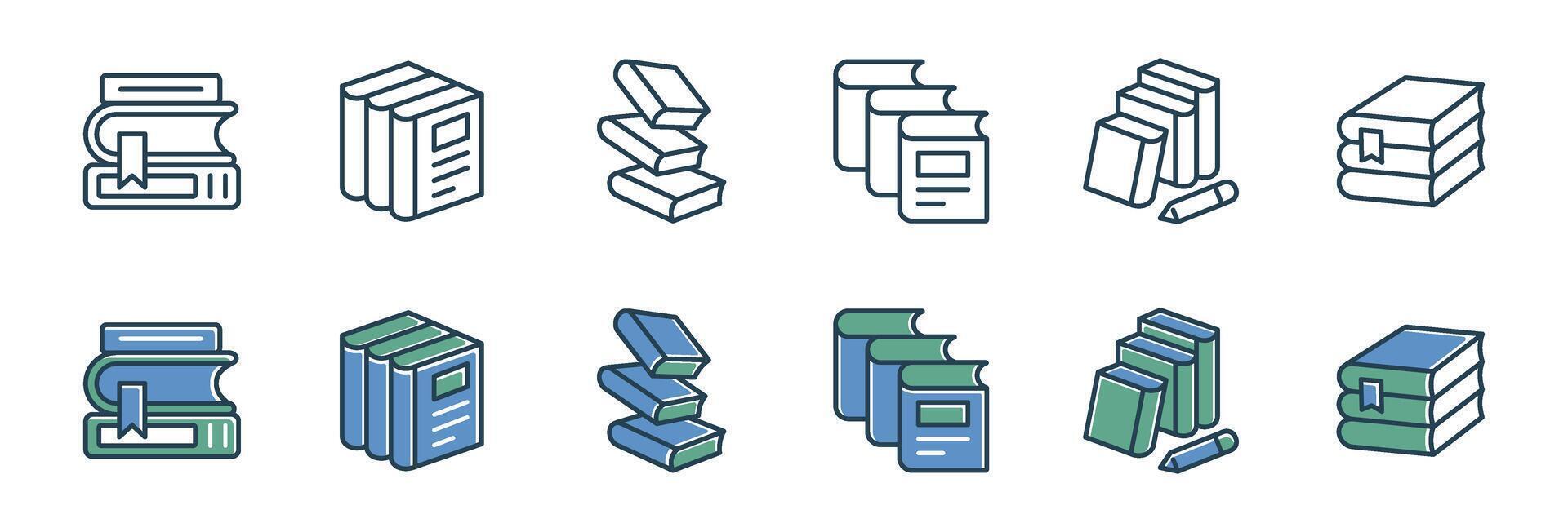 library book stack icon line set education school study pile of book read and learn signs illustration for web and app Pro Vector