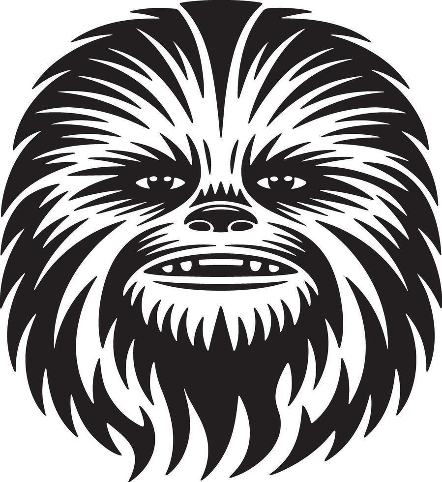 Monochromatic Depiction of a Wookiee Face Composed of Bold Graphic Lines and a Circular Border with a Grinning Facial Expression