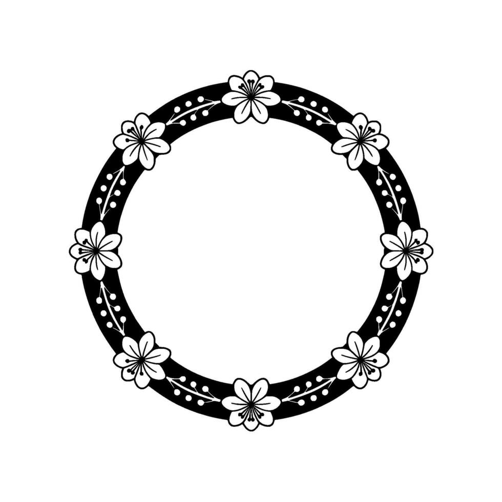 A of a circular frame adorned with delicate floral elements and small berries set against a soft neutral background Pro Vector