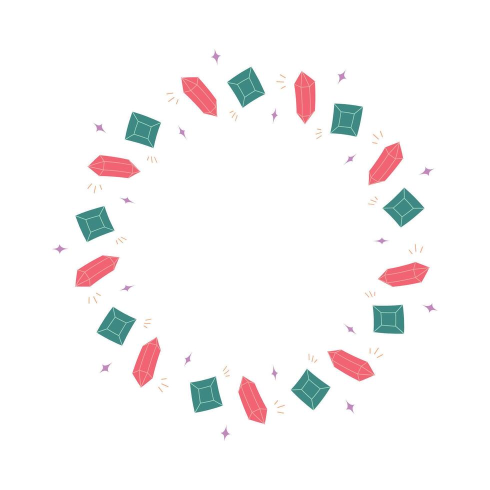 Ruby and Emerald Gemstone Frame with Crystals Circle Border Illustration Pro Vector
