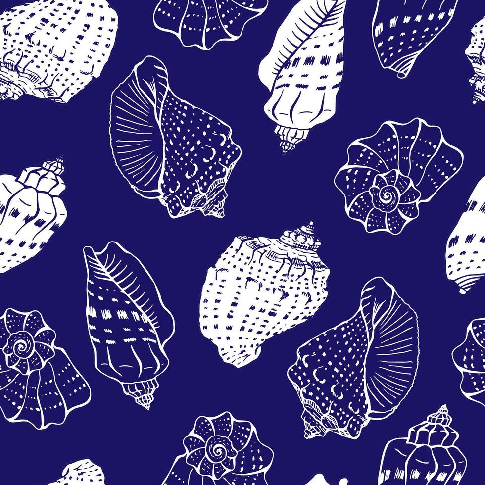 Seamless pattern. Shells of different shapes. Hand drawn illustration. Pro Vector
