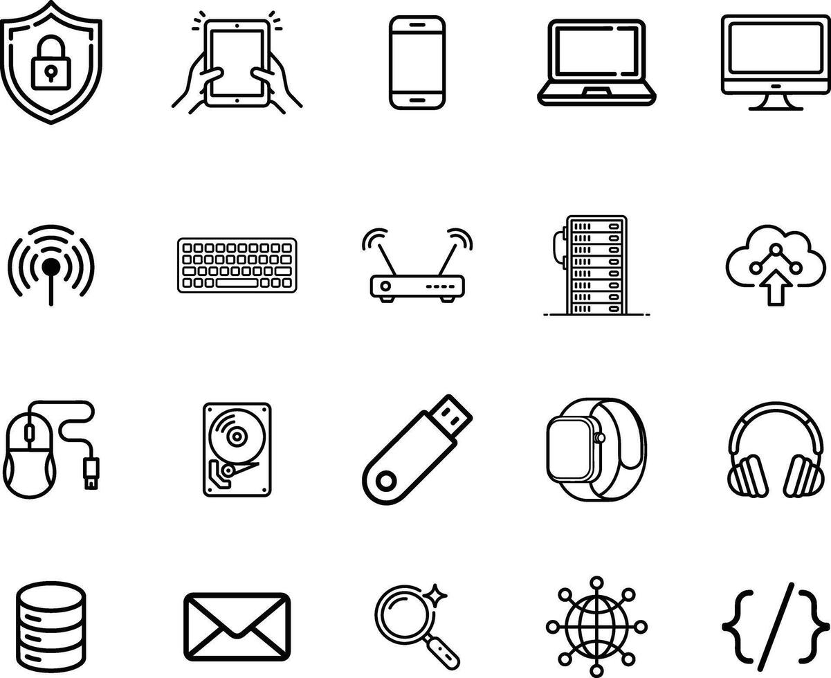 Technology Line Icons for Digital and IT Projects. Pro Vector