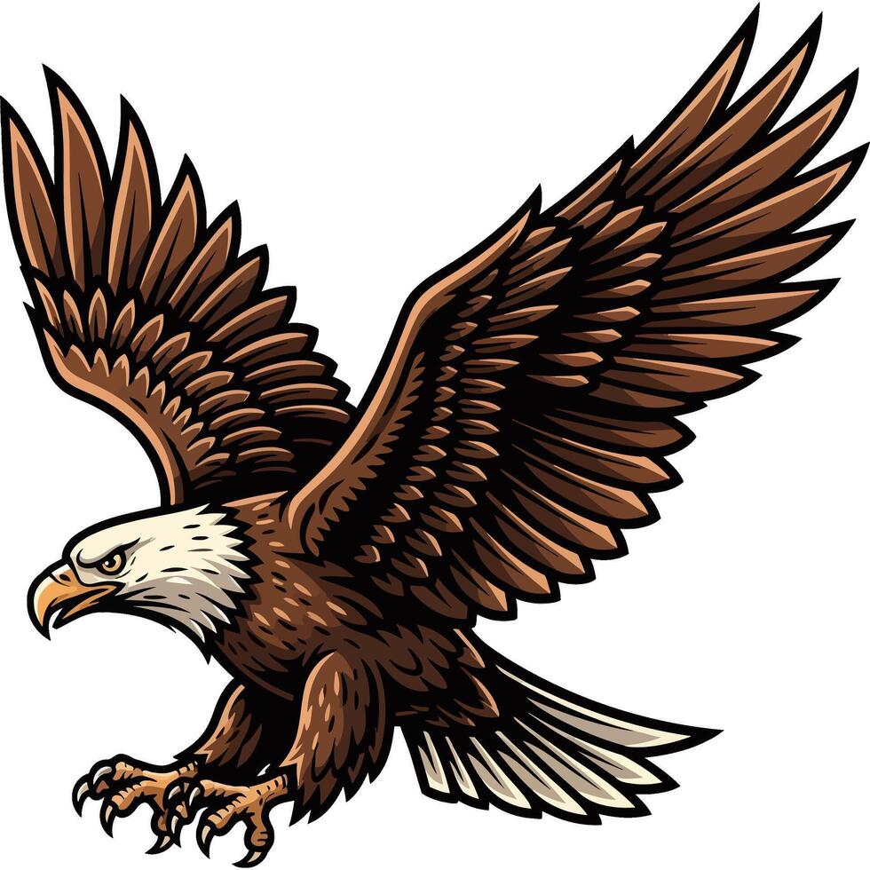 Dynamic illustration of a magnificent bald eagle in powerful flight, with wings spread wide and sharp talons ready, symbolizing strength, freedom, and the wild spirit of nature vector