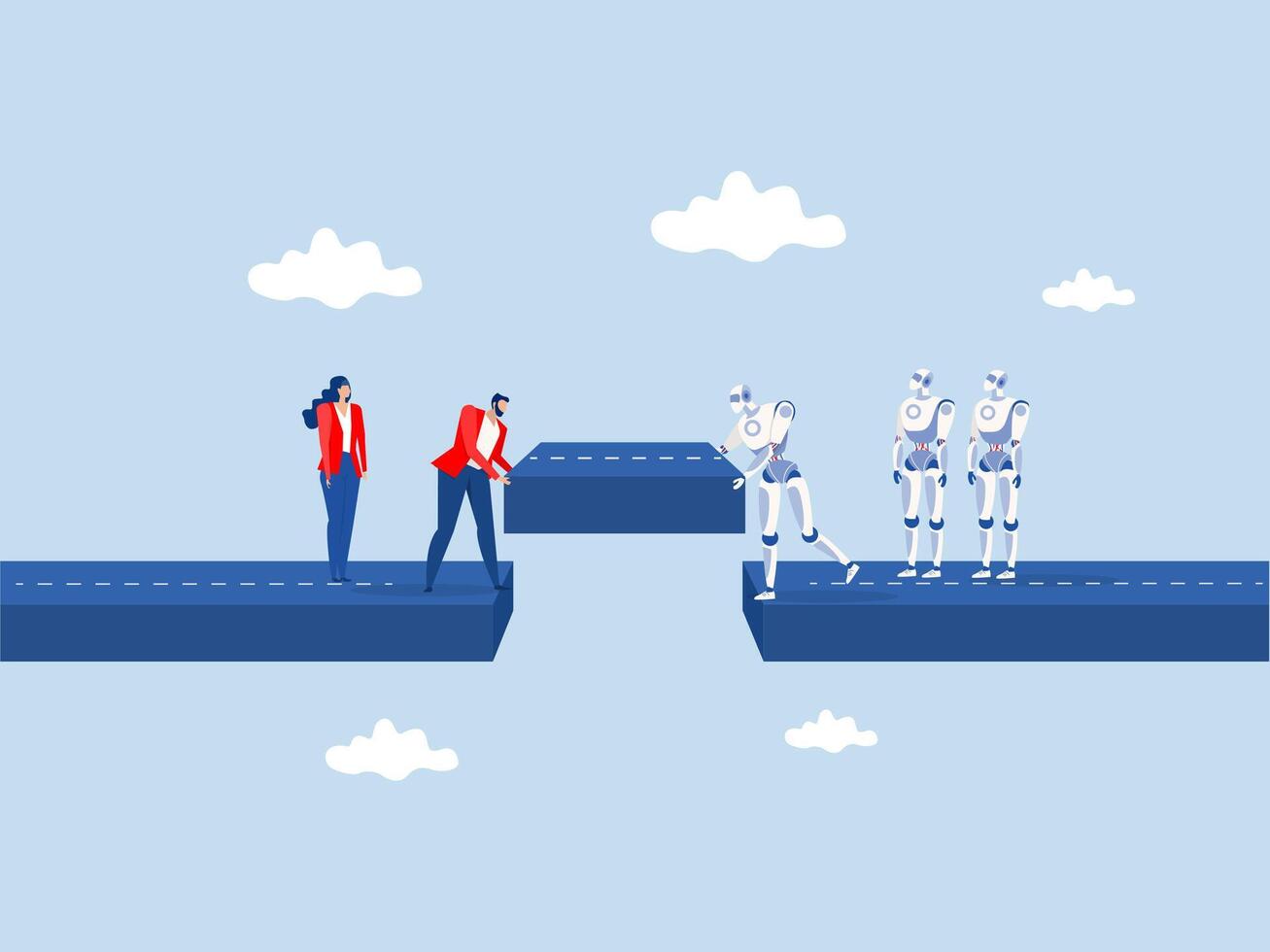 Teamwork,businessman with robot help building the bridge to connect the way ,Build business bridge connect path together Pro Vector