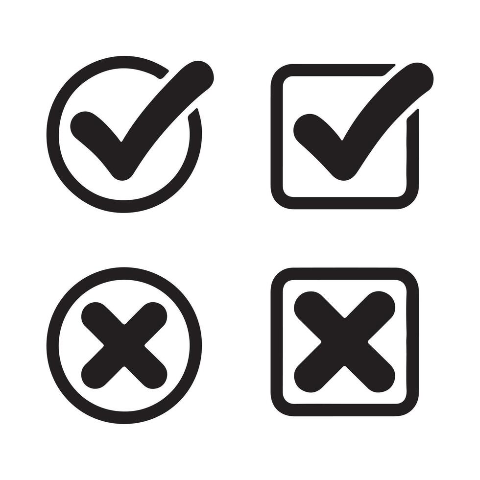 Four Check and Cross Mark Icons in Circles and Squares vector