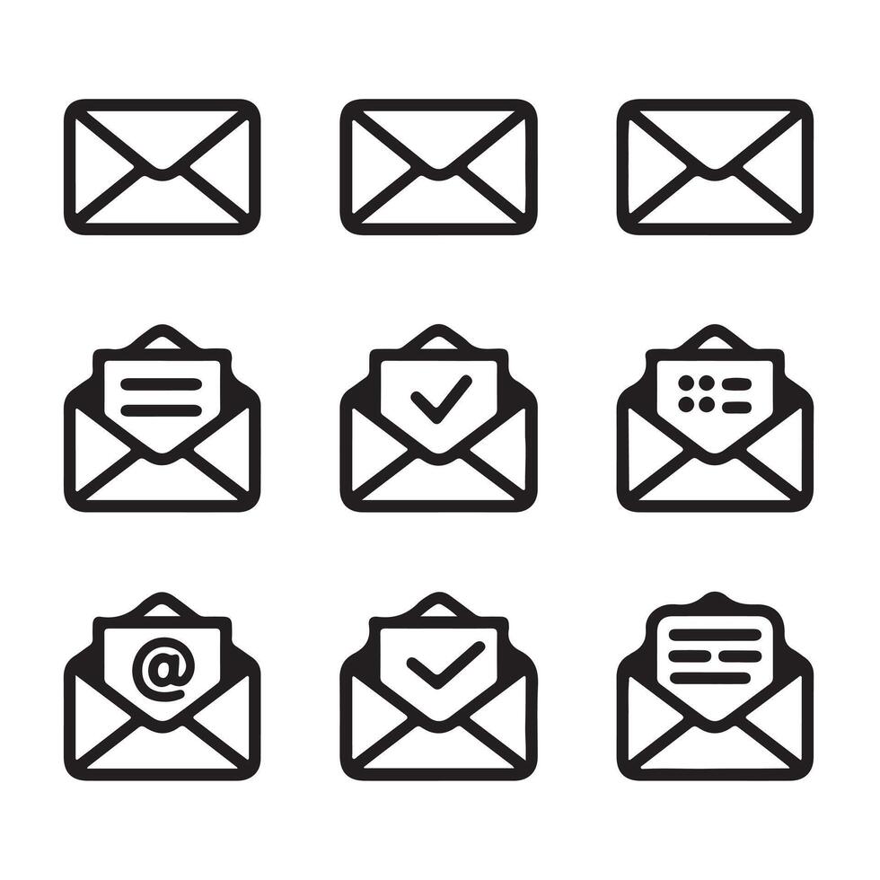 Nine Envelope and Email Icons in a Grid message communication Free Vector
