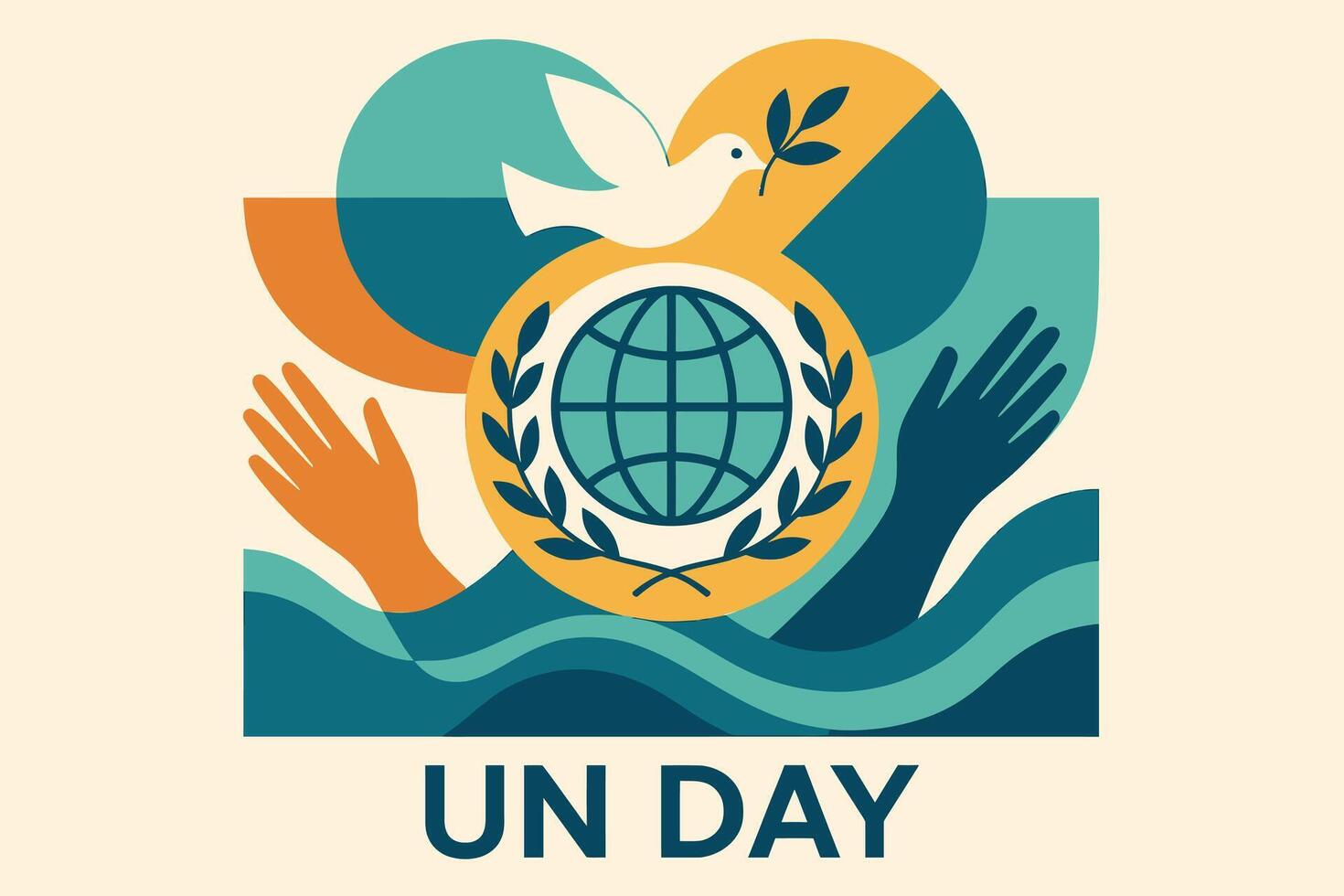UN Day featuring multiple elements symbolizing peace, unity, and global connection. Use layered geometric shapes, Pro Vector