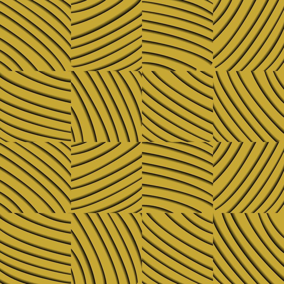 A golden tile pattern with curved wave-like lines forming a dynamic geometric texture. The shadows between the stripes create a sense of depth and dimension, making it appear embossed. vector
