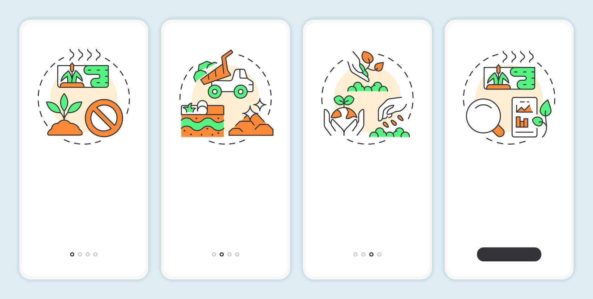 Phases of wetland restoration onboarding mobile app screen. Water sources. Walkthrough 4 steps editable graphic instructions with linear concepts. UI, UX, GUI Pro Vector
