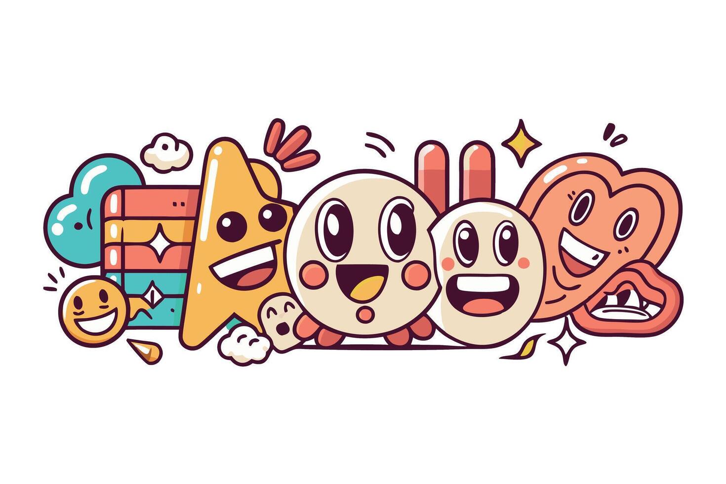 cartoon expressions and signs with various fun and happy faces, illustrations on a Transparent Background for playful design projects vector