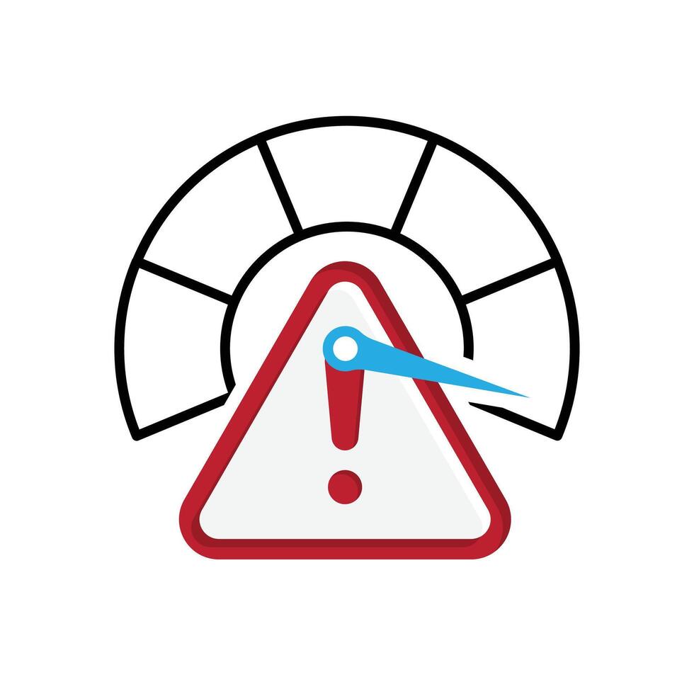 Risk icon. Management. Speedometer with an exclamation mark inside a red triangle. manager, success. mixed design style. Pro Vector