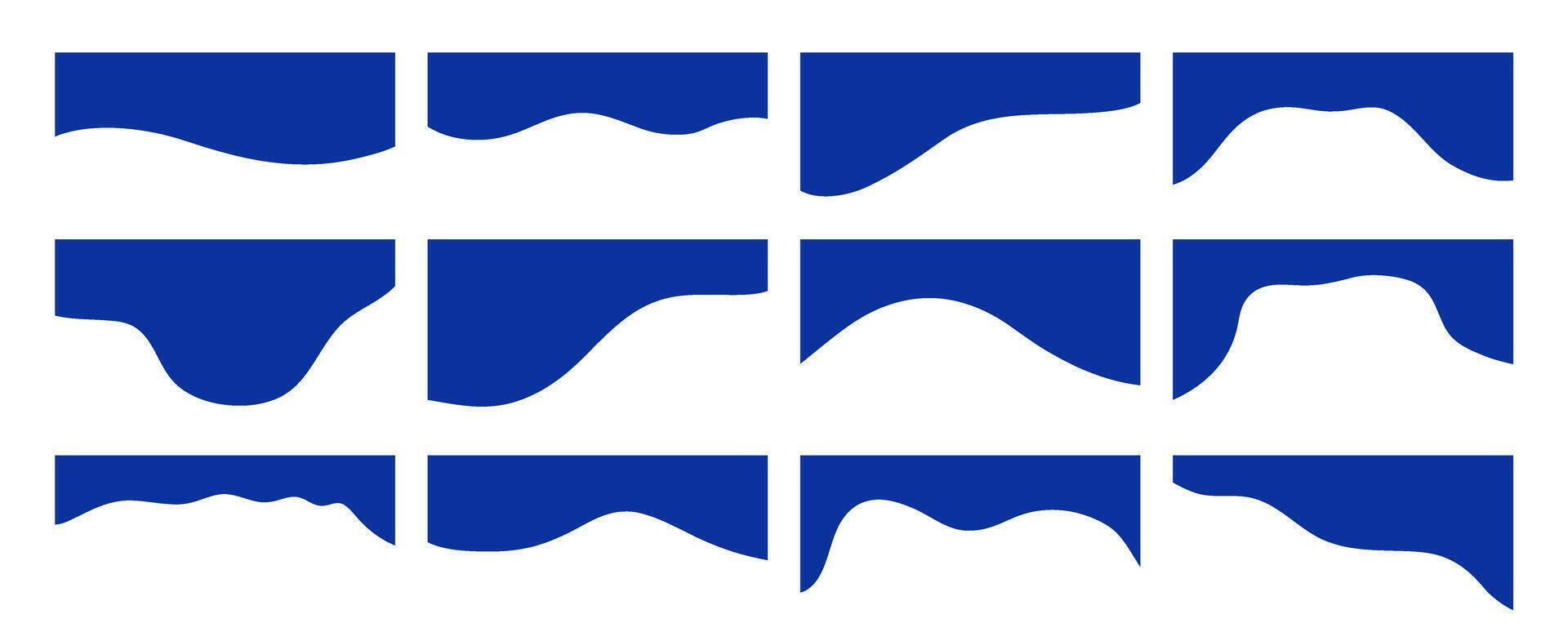Blue Separator header for website and app. Dividers shape templates set. Modern wavy collection of abstract design element for top and bottom page web site. Illustration in flat style Pro Vector