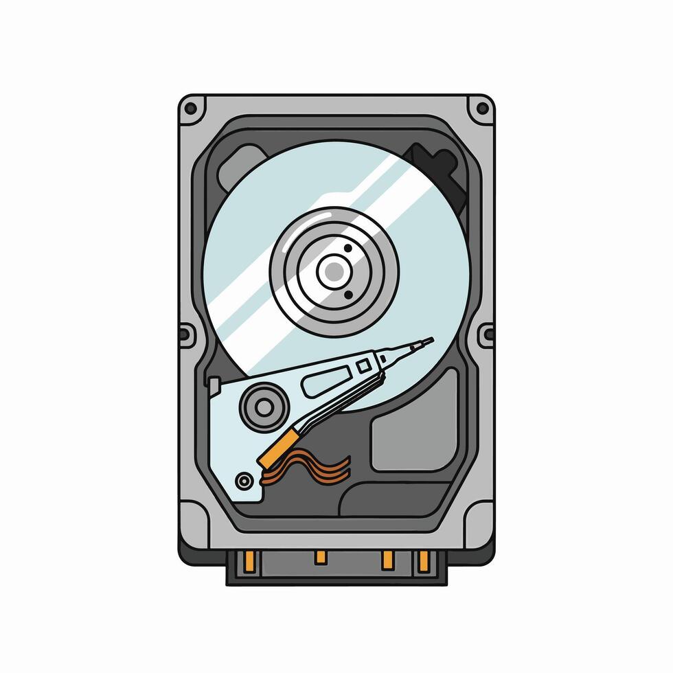 Open view of a hard disk drive showing internal components for data storage vector