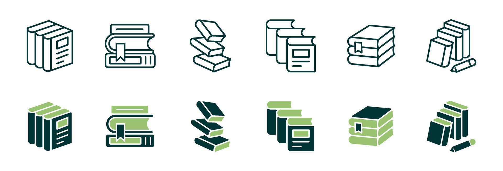 simple education pile of book icon line set library study book stack read and learn signs illustration for web and app Pro Vector